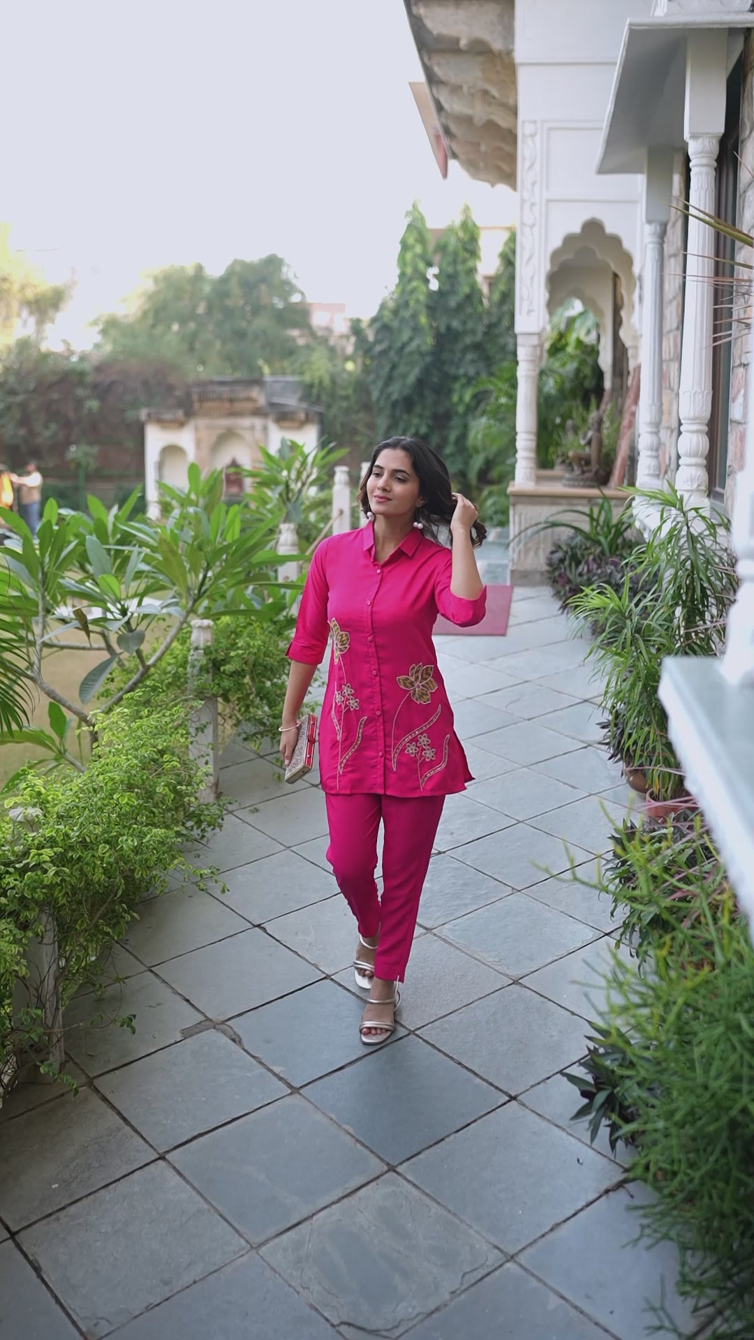 Barbie Pink Floral Embroidered Button-Down Trendy Co-ord Set
